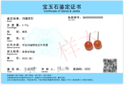 贵金属及宝玉石鉴定证书正反面